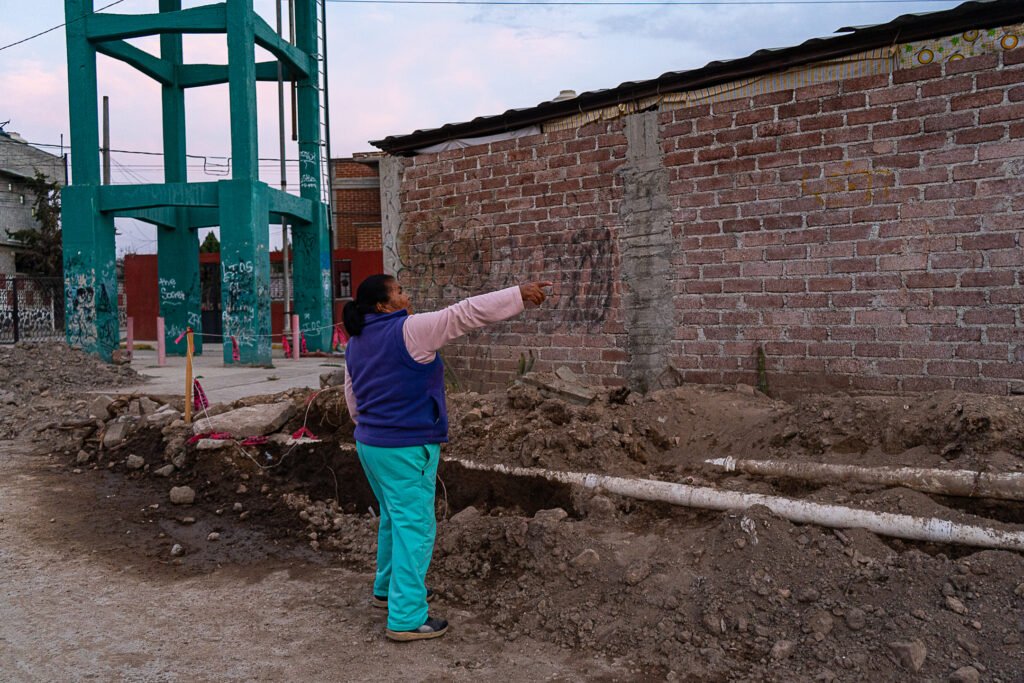 En este panorama de desolación y resistencia, tres familias encarnan el costo humano del «progreso». Sus hogares, situados frente a las vías del Tren AIFA-Pachuca, son el blanco de una demolición anunciada y una reubicación forzada lejos de su pueblo, que ha comenzado por destruir la calle que los conectaba con el mundo, aislando su existencia.