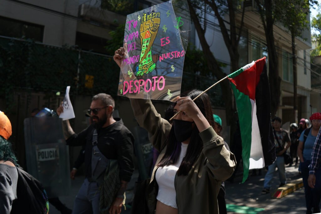 La movilización formó parte de una jornada más amplia de protesta antituristificación en la capital. Con pancartas y consignas, lxs manifestantes denunciaron que las policías públicas orientadas a detonar proyectos turísticos rumbo al evento internacional están generando desplazamiento, encarecimiento de la vivienda y presión sobre territorios comunitarios y áreas ambientales.