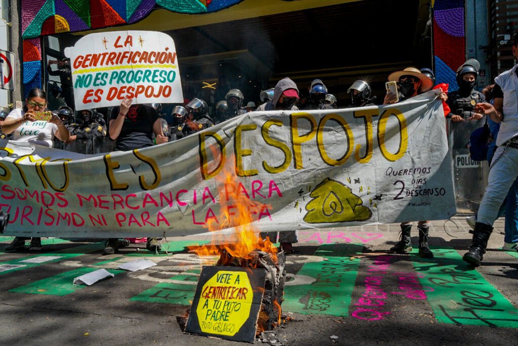 Este viernes, diversos colectivos realizaron un mitin a las afueras de la Secretaría de Turismo de la Ciudad de México, ubicada en la colonia Condesa, para manifestarse en contra de la turistificación y gentrificación la cual se han intensificado en el contexto del próximo Copa Mundial de la FIFA 2026.